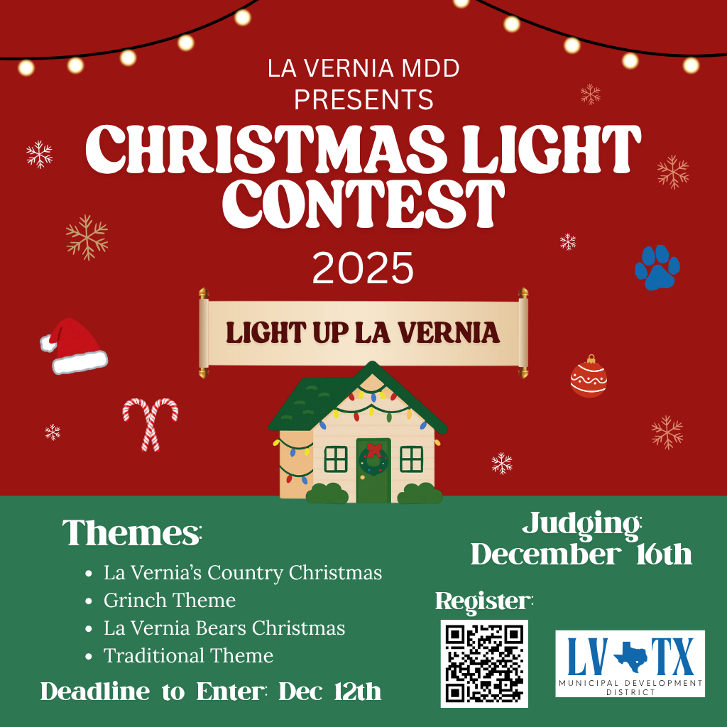 The City of La Vernia invites residents and businesses to spread holiday cheer by participating in our 2025 Christmas Light Contest.